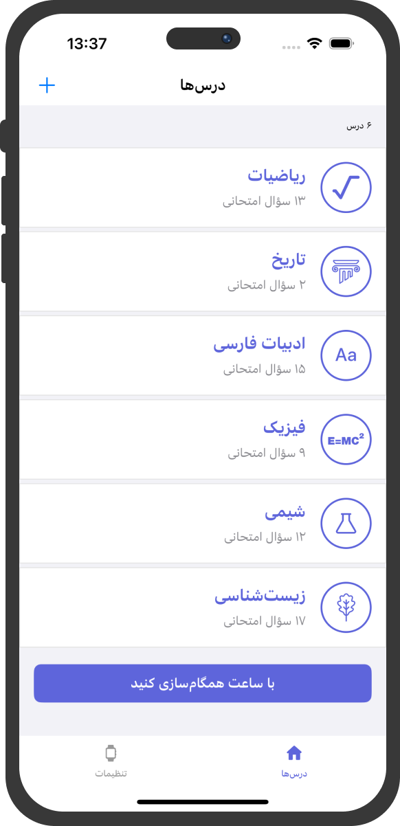 برنامه را روی آیفون نصب کنید، درسها را اضافه کنید، لیستی از پرسشها و موضوعات تهیه کرده و سپس پاسخها را بنویسید. این کار را میتوانید مستقیماً در برنامه، سریع و راحت انجام دهید.